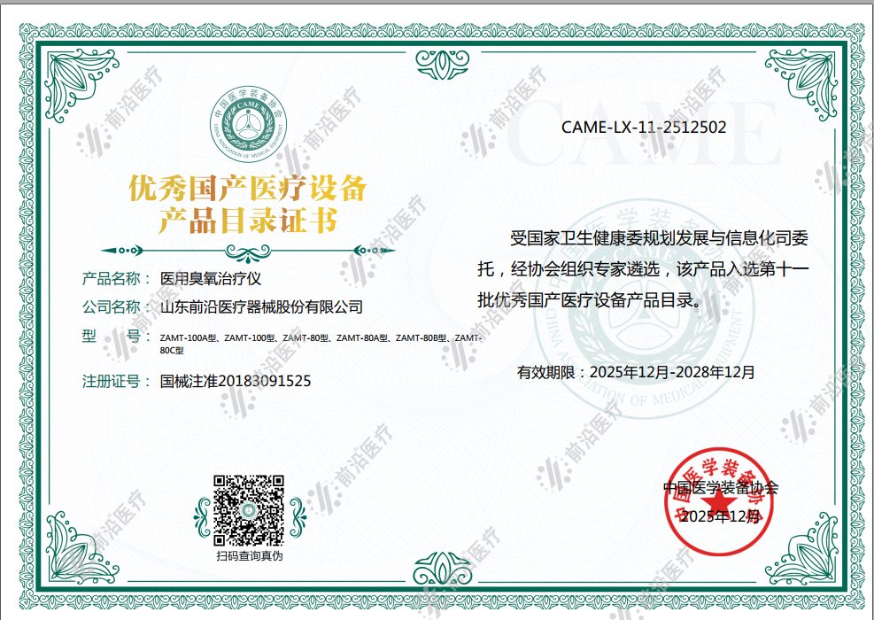 祝賀前沿醫(yī)療6款醫(yī)用臭氧治療儀,成功入選中國醫(yī)學(xué)裝備協(xié)會評選的第十一批優(yōu)秀國產(chǎn)醫(yī)療設(shè)備名單!這是繼2020年11月,公司研發(fā)生產(chǎn)的內(nèi)熱式針灸治療儀入選《第九批優(yōu)...